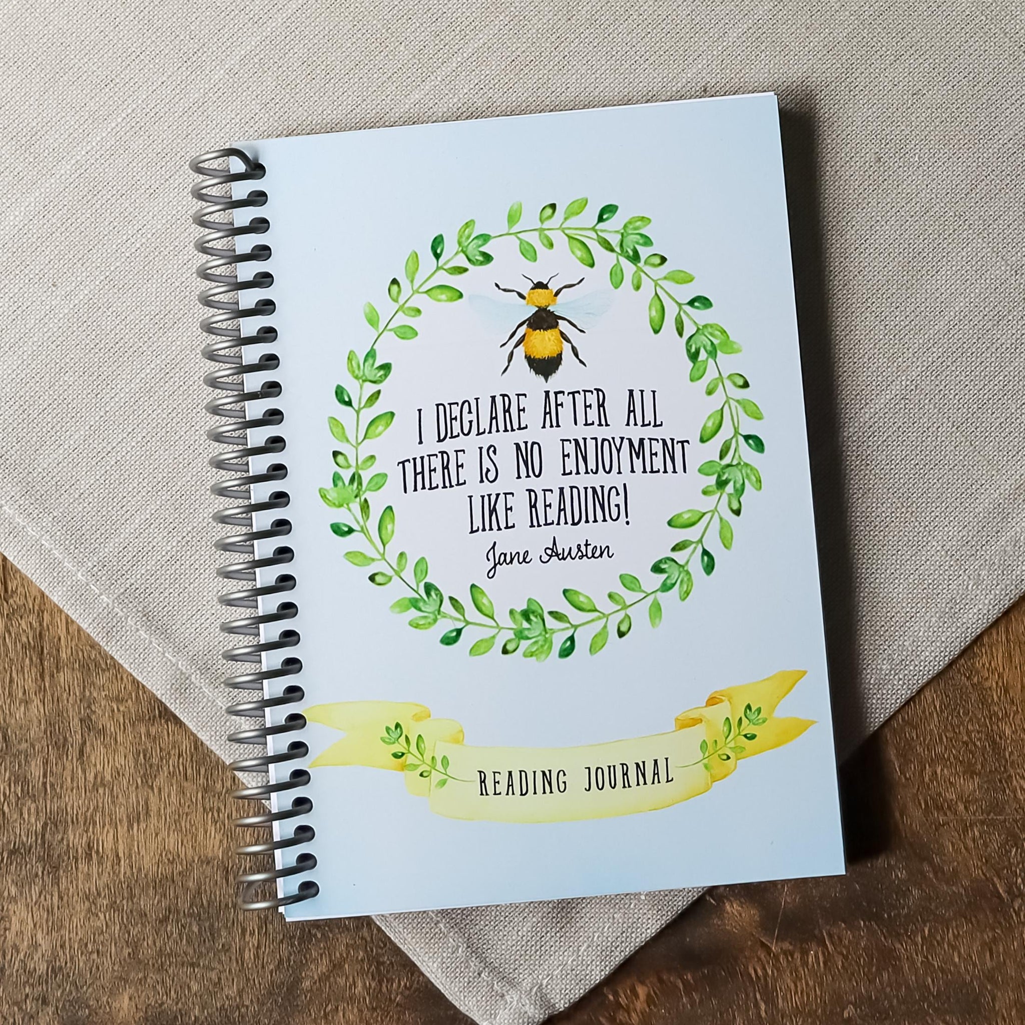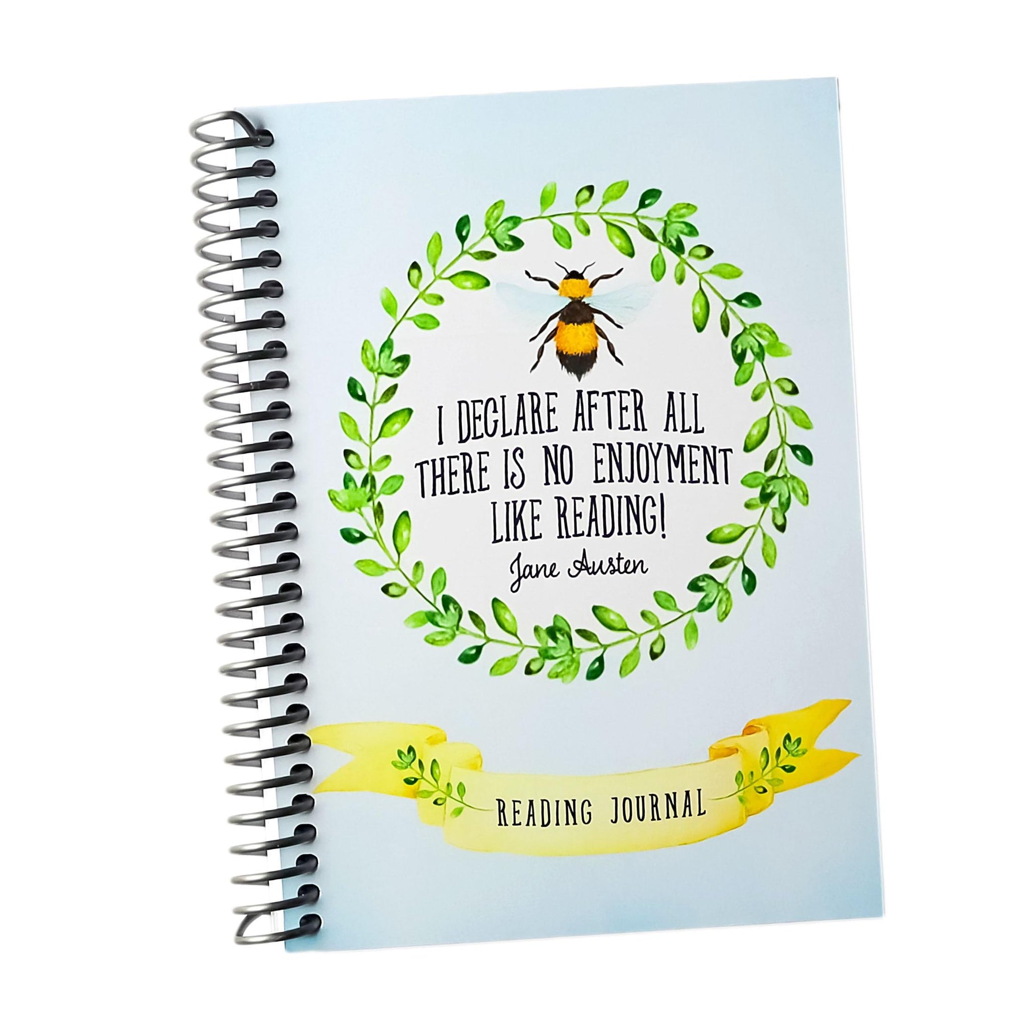 This Jane Austen Reading Journal is made for readers who treasure their literary journeys. Designed with a watercolor bee and laurel wreath, this 5x7" spiral-bound notebook features thoughtful prompts to help you reflect on every book you read.