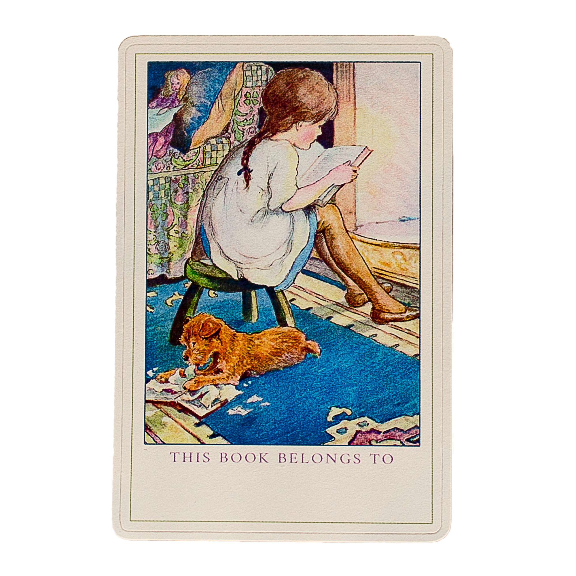 When you want to skip the toy aisle, these kids' bookplate stickers just might be the right touch. Featuring a young girl reading with her doll and pup (who has found a totally different way to enjoy his book).