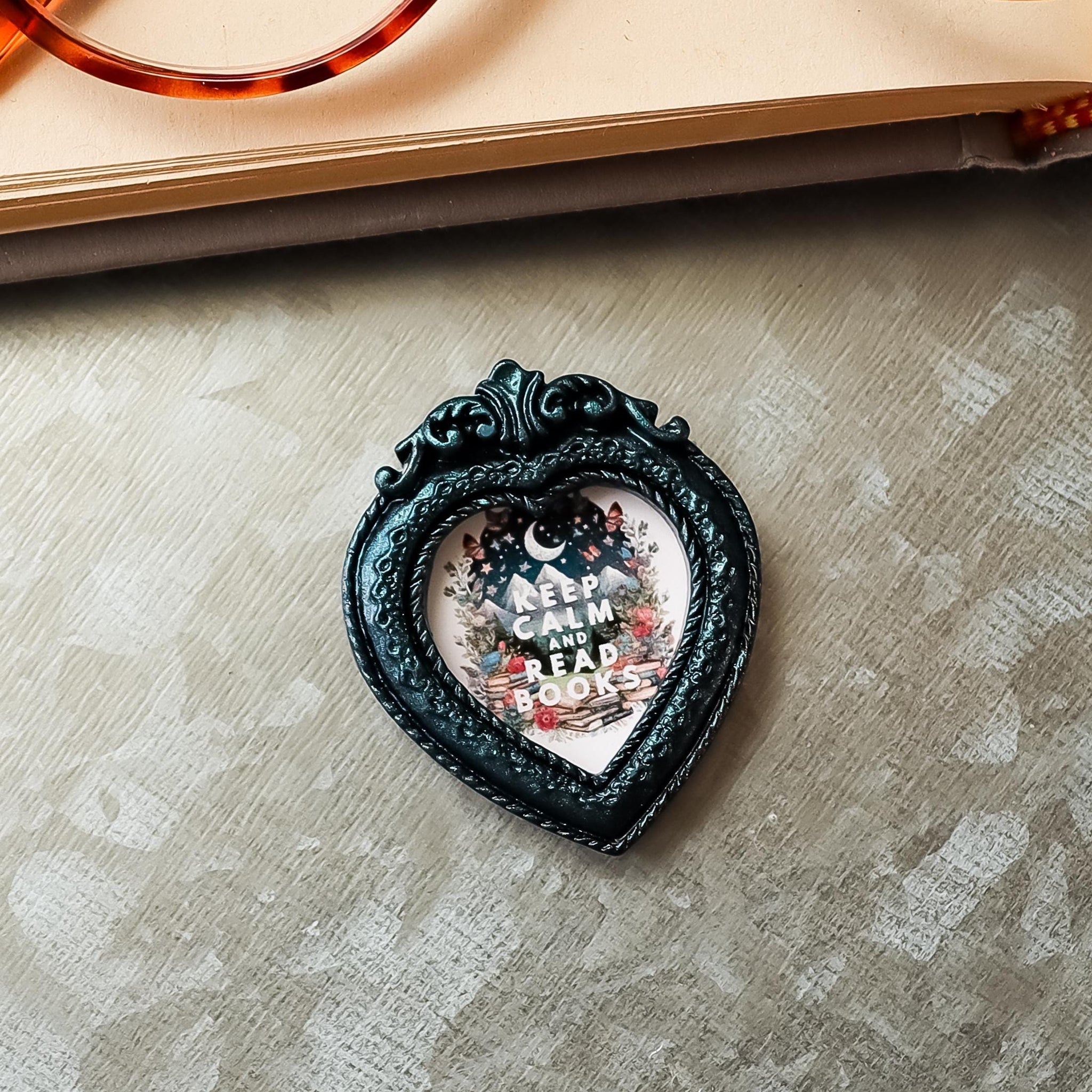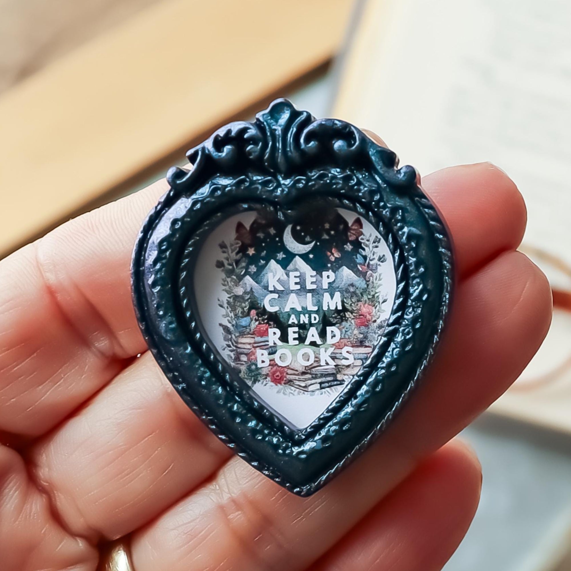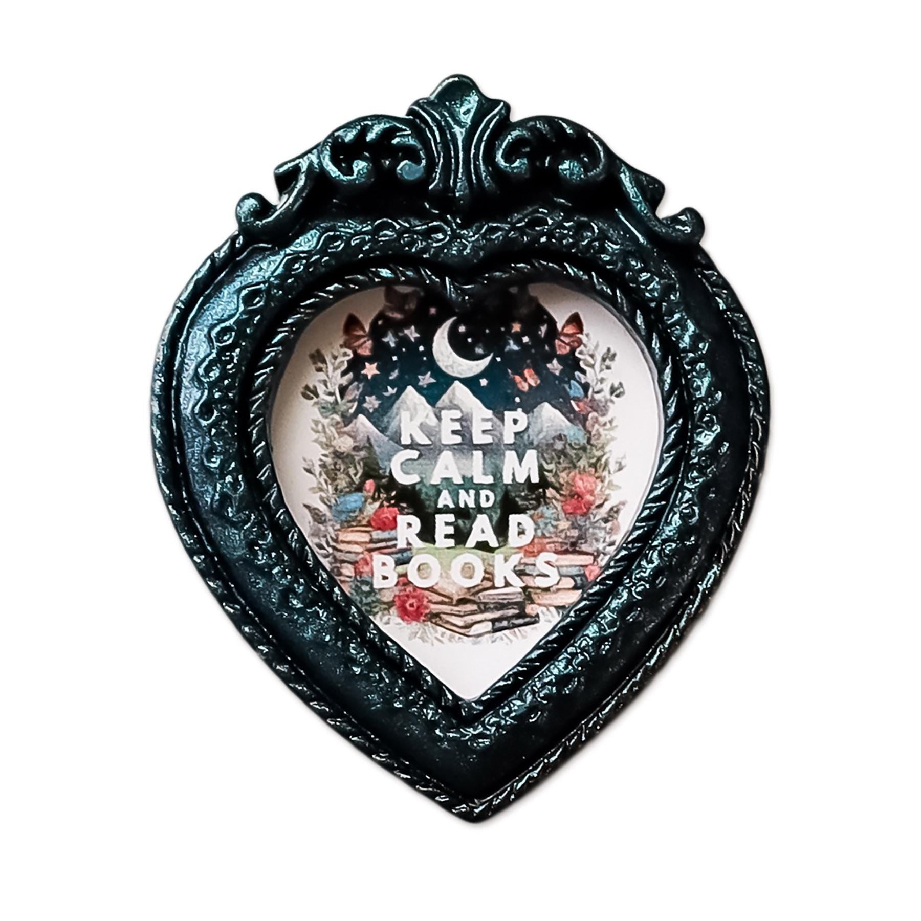 • Vibrant miniature floral art with “Keep Calm and Read Books”