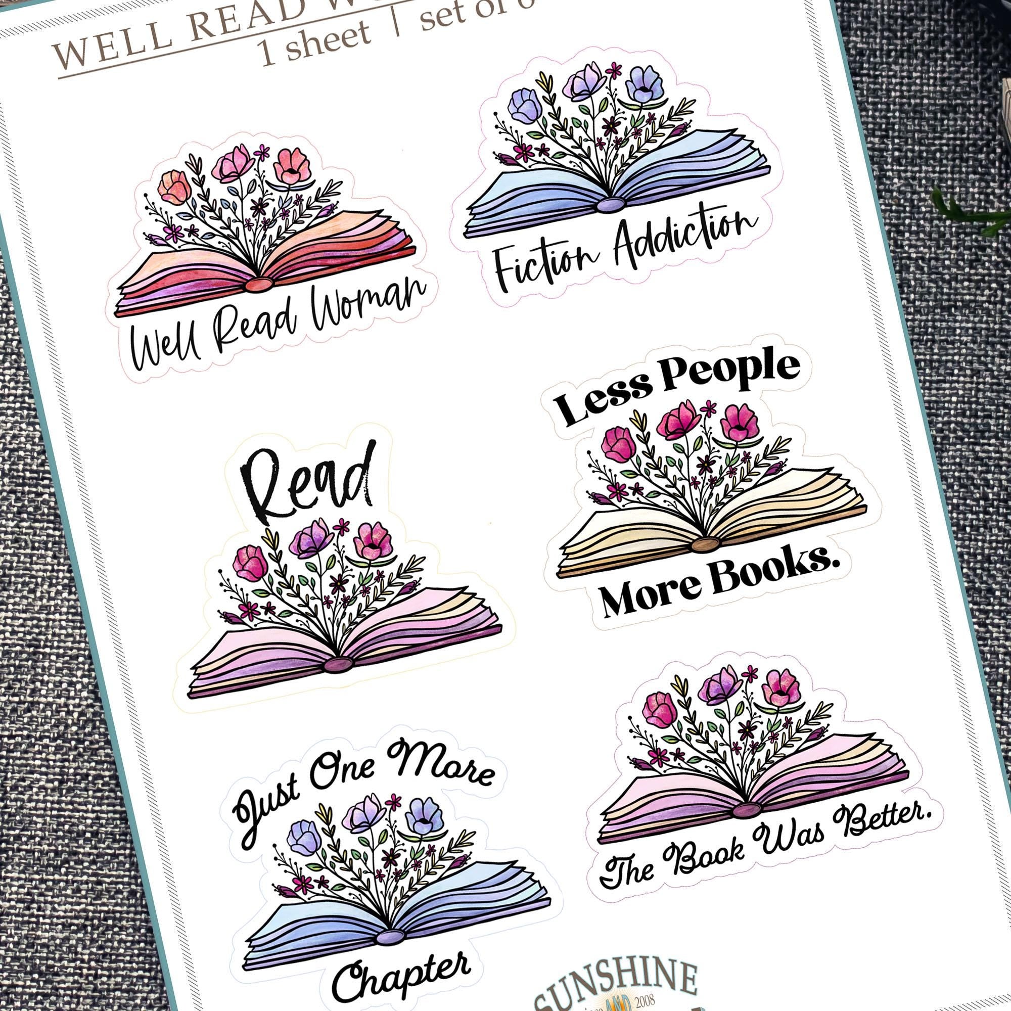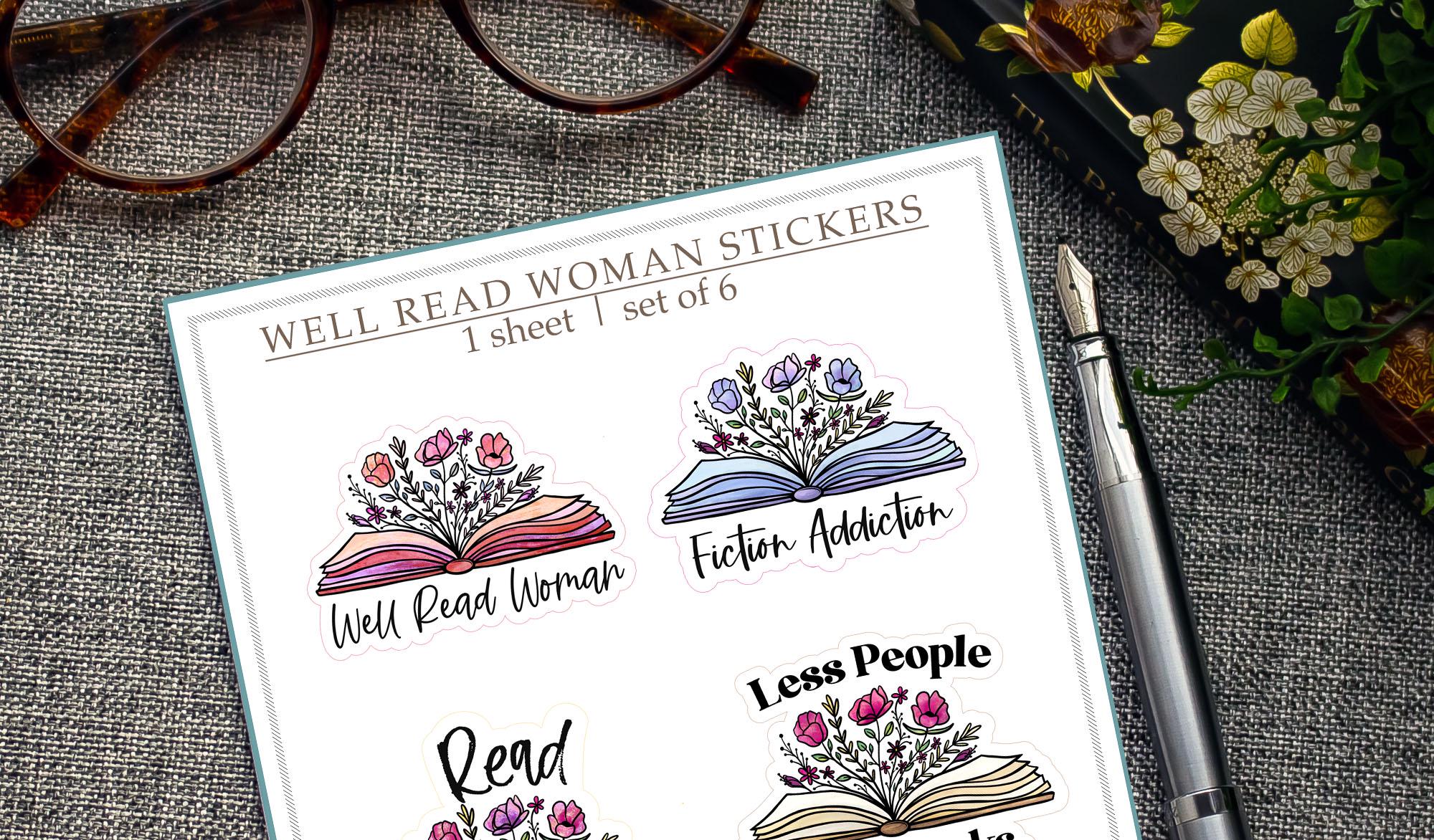 This sticker sheet celebrates fiction lovers and fiercely well-read women everywhere. With six water-resistant vinyl designs featuring florals blooming from open books and clever reader quotes like “Less People, More Books” and “The Book Was Better,” it’s equal parts thoughtful and literary.