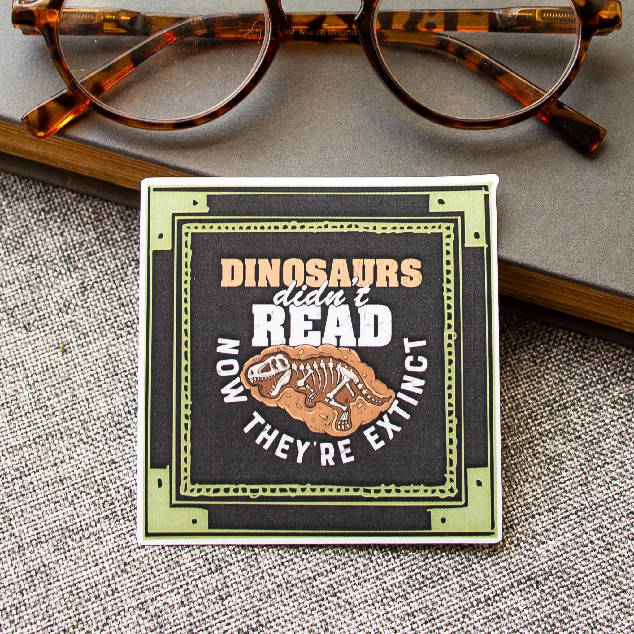 • Dinosaurs Didn’t Read dino skeleton sticker (approximately 3"x3")