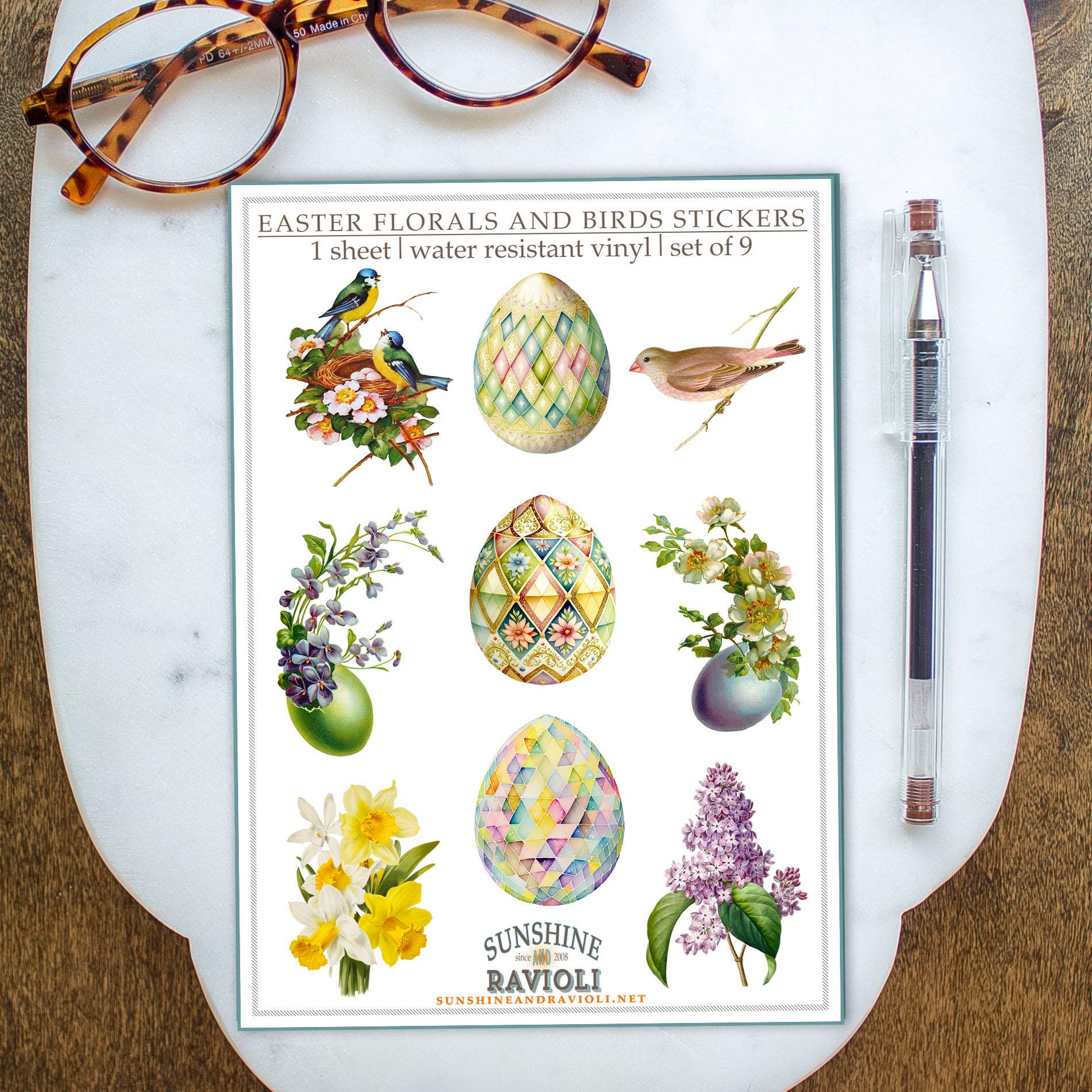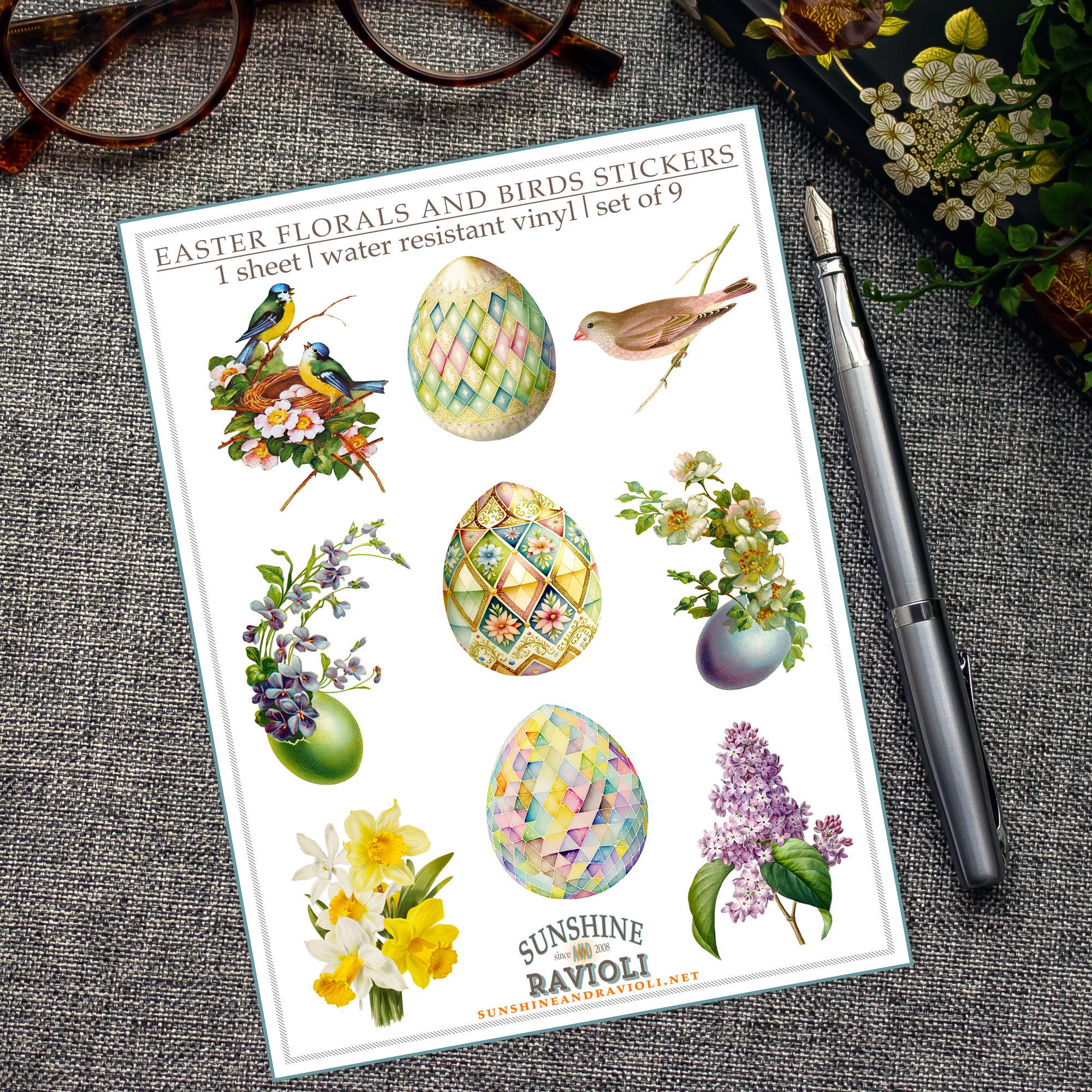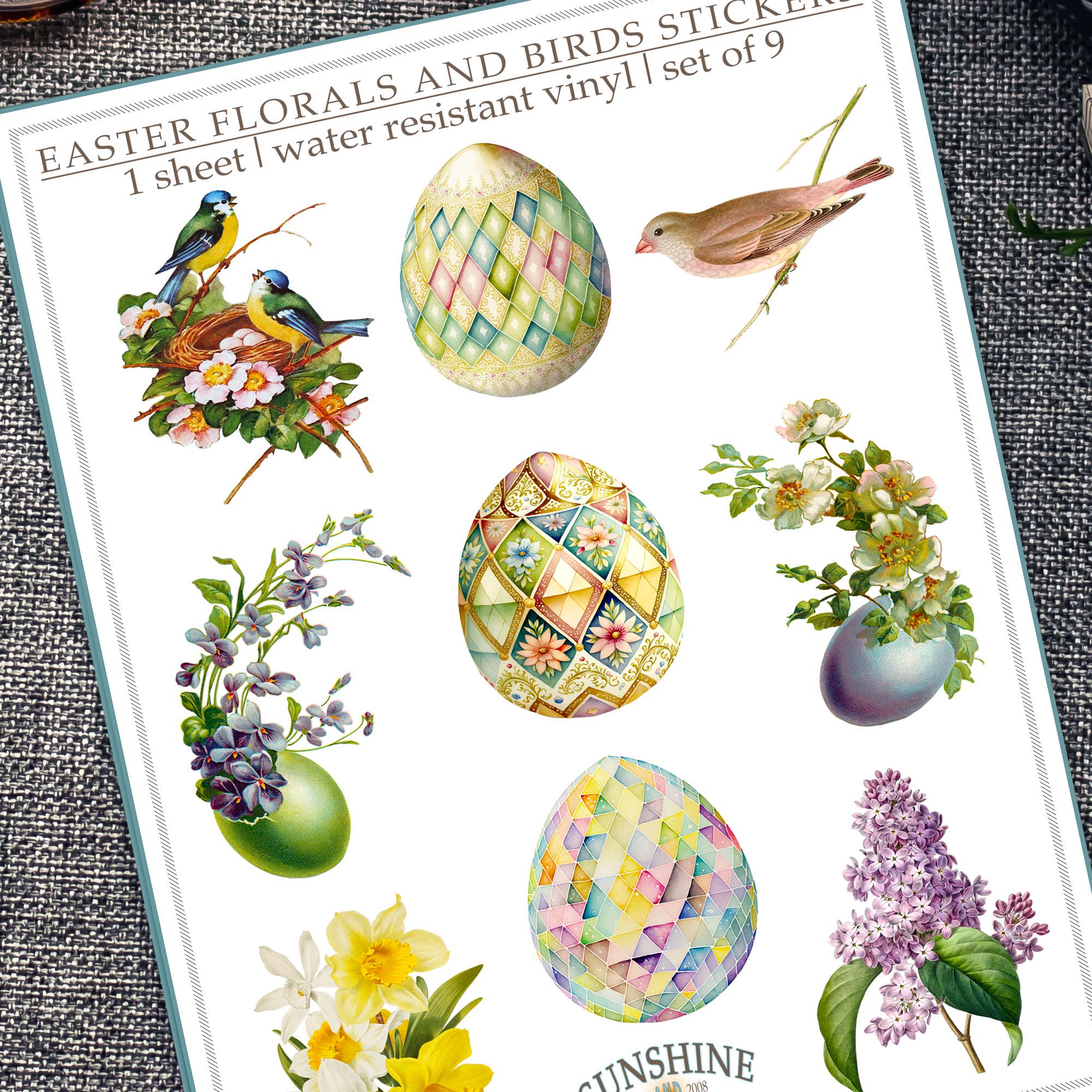 EASTER FLORALS AND BIRDS STICKER SHEET: